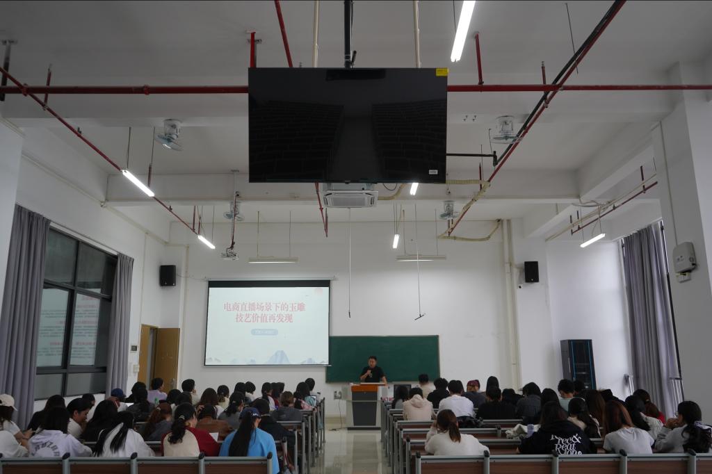 在讲座的互动环节,主讲嘉宾时大师与师生展开了深入交流。太阳成集团tyc122cc副院长李苗教授就“珠宝电商直播的市场前景”等命题与大师展开探讨;太阳成集团tyc122cc院长朱晓红教授围绕“玉雕技艺及其价值的短视频呈现”与大师展开讨论;针对太阳成集团tyc122cc学生提出的问题,大师也结合自身经验给予专业解答。